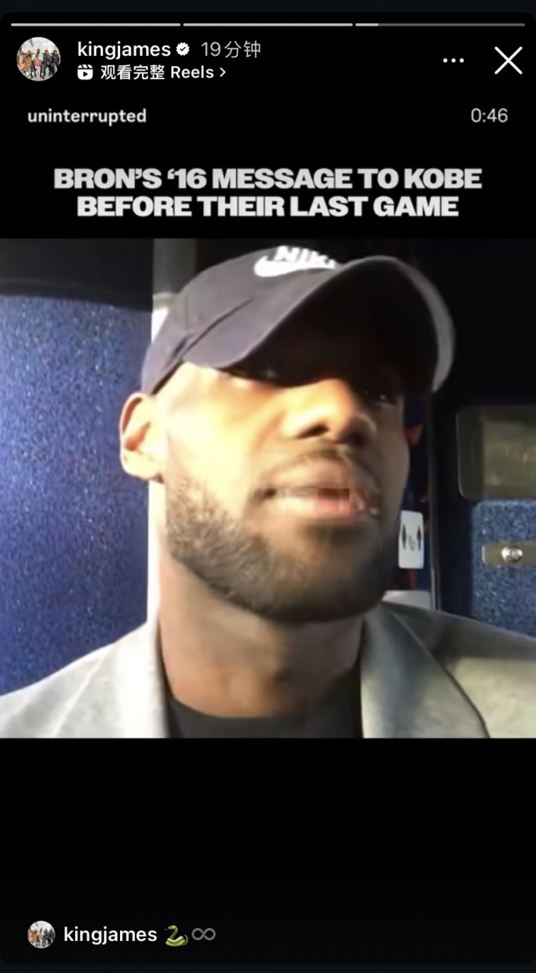 8月25日讯 湖人前锋詹姆斯更新Instagram Story动态。