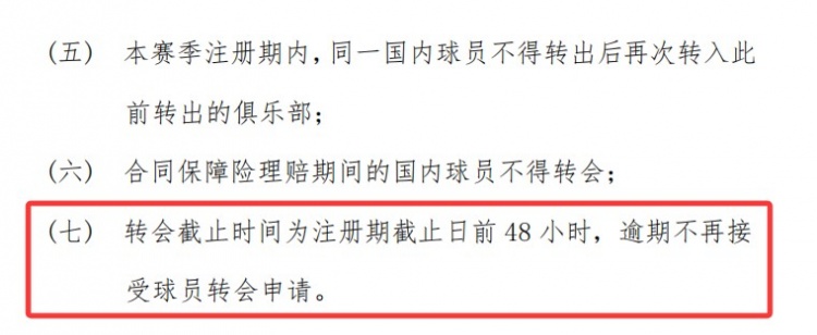 实际上,就转会操作来说,留给各支球队的时间只有5天了,因为按照规定,转会截止时间为注册截止日(8月31号)前48小时,逾期不再受理转会,也就是说,要完成球员转会,球队最晚要在8月29号向联盟提交申请。
