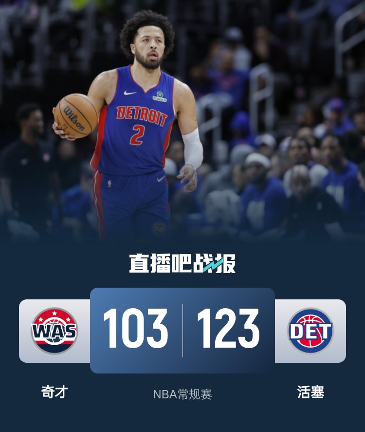 3月12日讯 NBA常规赛,活塞今日迎战奇才,前者上场比赛战胜开拓者,后者则是输给猛龙,此役库利巴利、布罗格登和艾维等人缺战。