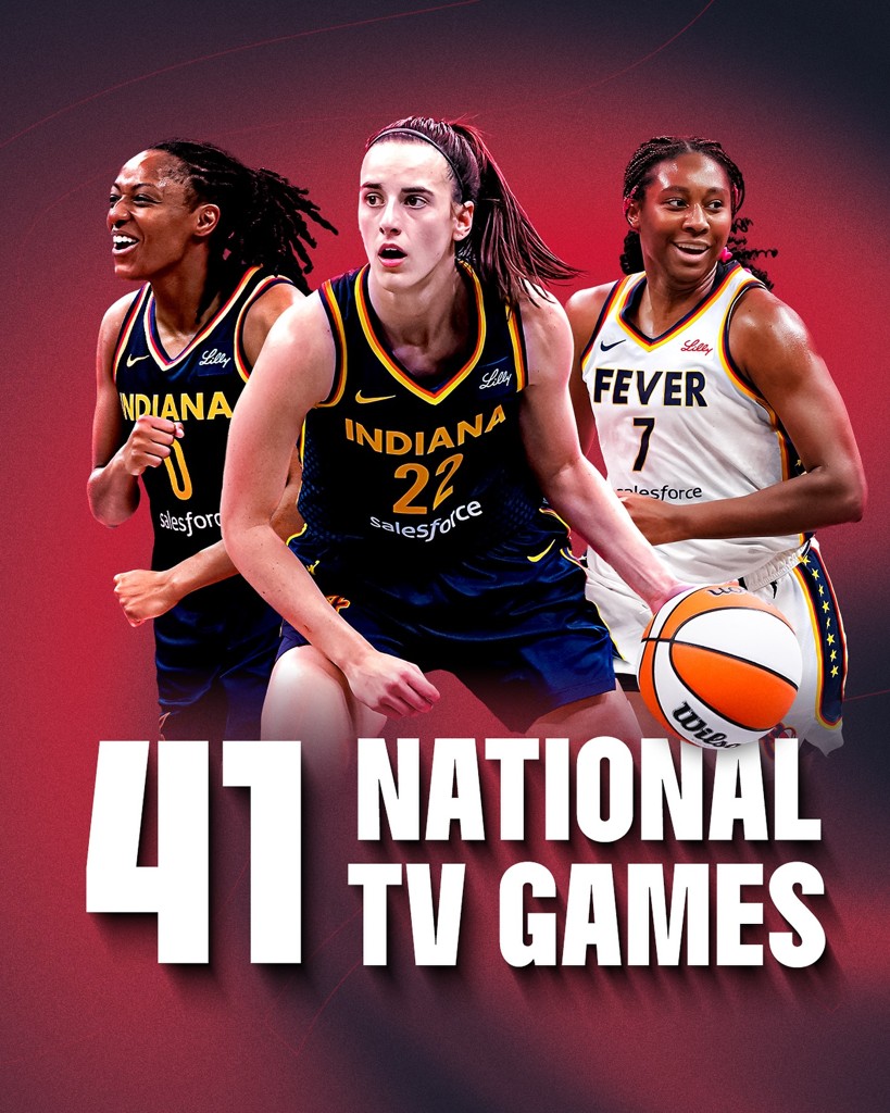 03月22日讯 WNBA官方昨日公布了2025赛季完整的全美直播时间表,上赛季状元&最佳新秀凯特琳-克拉克所在的印第安纳狂热,在44场常规赛中拥有41场全美直播。这一数字创造了狂热队史以及WNBA联盟历史单赛季最多全美直播场次纪录!