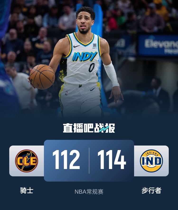 开场后步行者上来连中两记三分,骑士随后找到节奏紧咬比分,托平和马瑟林替补登场后联手帮助步行者拉开比分。第二节上来亨特接连砍分带领骑士打出攻势将比分反超,杰罗姆也是频频拿分,虽然步行者也重新打出进攻势头,但骑士依旧以4分优势结束上半场。易边再战,杰罗姆带领骑士依旧打得比较稳健,步行者则是靠哈利伯顿和内史密斯联手追分。最后一节两队依旧打得难舍难分,双方在打成107平后步行者连得6分取得领先。波特三分命中,随后骑士成功挑战获得罚球,但两罚一中未能追平比分,特纳拿到关键前场篮板,骑士只能采用犯规战术,骑士绝平球未中,最终步行者114-112险胜骑士取得6连胜。
