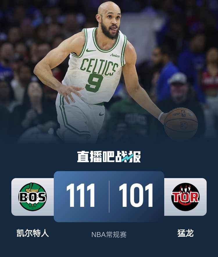 2月26日讯 NBA常规赛今日继续开打,猛龙今日坐镇主场迎战凯尔特人,凯尔特人近期状态大热,过去10场比赛赢下9场。