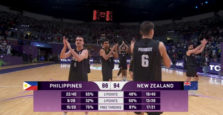 第四节菲律宾一度把分差迫近到3分,但最后时刻菲律宾归化布朗利连续出现失误,最终菲律宾不敌新西兰。