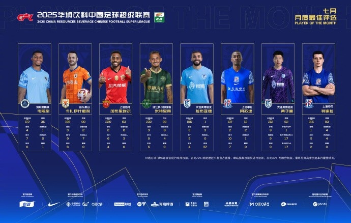 8月7日讯 中超官方公布7月最佳球员候选名单,8位候选人是:韦斯利、卡扎伊什维利、加布里埃尔、米特里策、拉布亚德、阿苏埃、黄子豪和特谢拉。