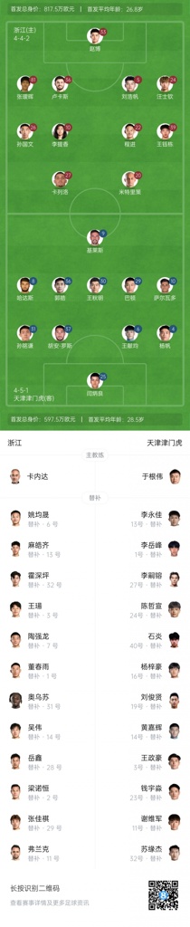 08月20日讯 19点35分中超第23轮,浙江队主场迎战天津津门虎,本场比赛原定于8月30日进行,但因保障U22国足备战提前至今日进行。