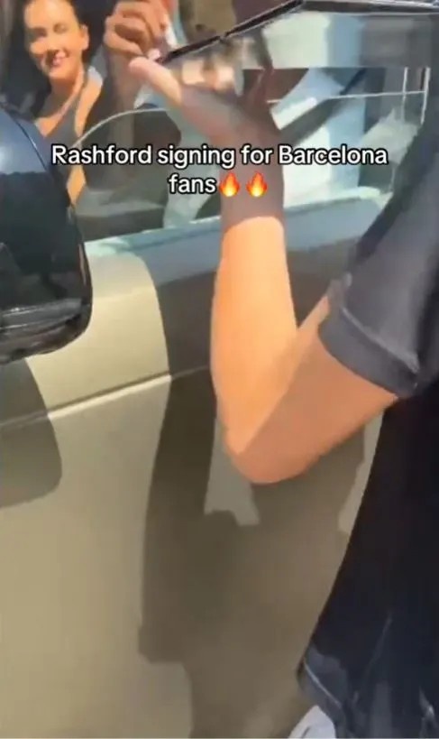 一段上传至TikTok的视频显示,拉什福德从他的路虎揽胜车窗里为巴塞罗那球迷签名,露西亚则坐在副驾驶座位上。
