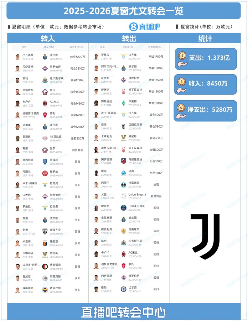 为吧友们总结了尤文图斯今夏的转会操作,吧友们能打几分?