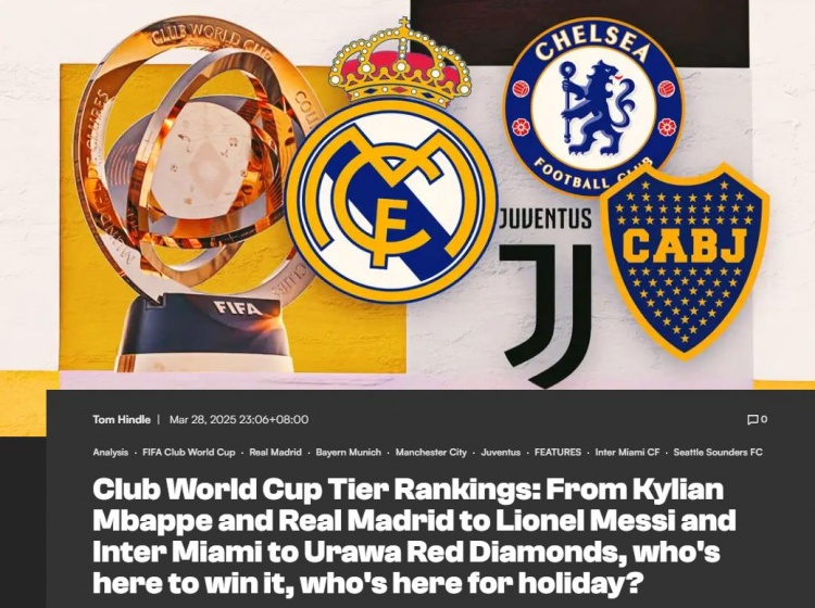 3月29日讯 新世俱杯将于今年夏天在美国举行,“进球网”为已经确定的31队进行了“分班”。