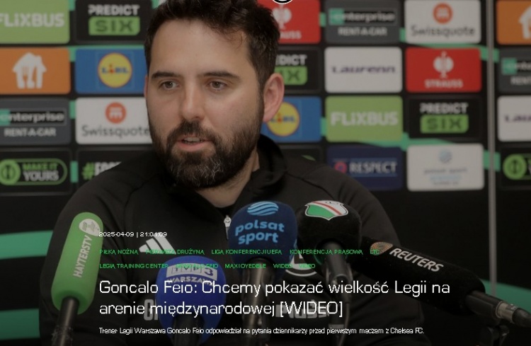 4月10日讯 欧协联1/4决赛首回合,波兰球队华沙莱吉亚将在主场对阵切尔西。莱吉亚主帅费奥赛前接受采访。
