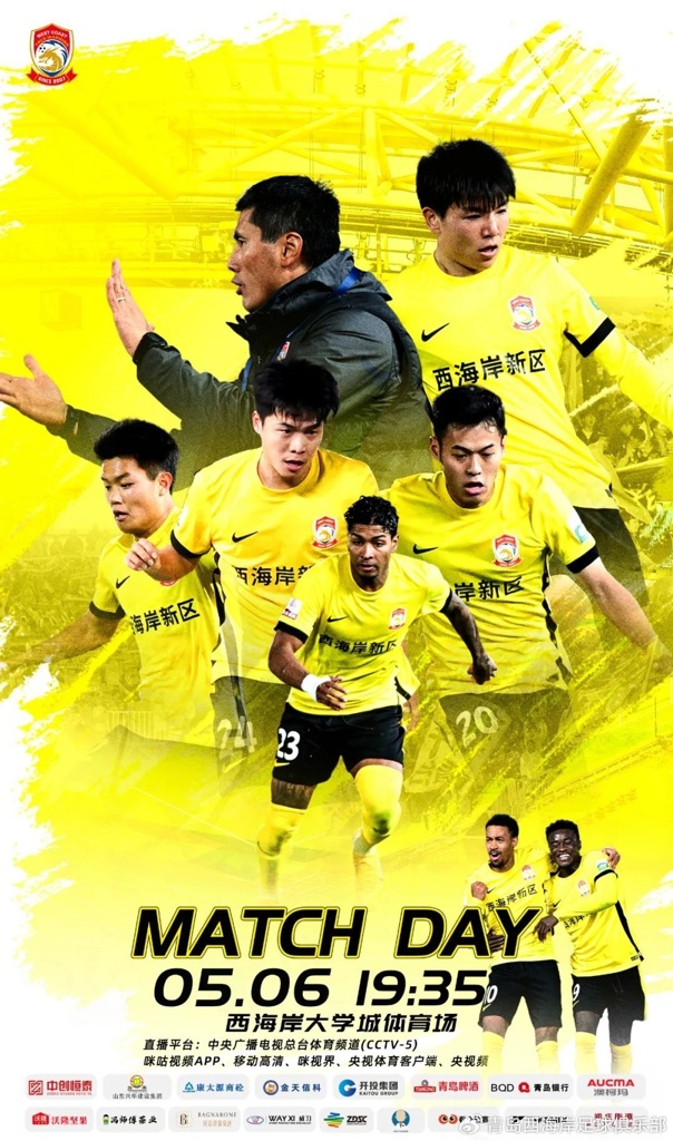 05月06日讯 19点35分中超第11轮,青岛西海岸主场迎战深圳新鹏城。