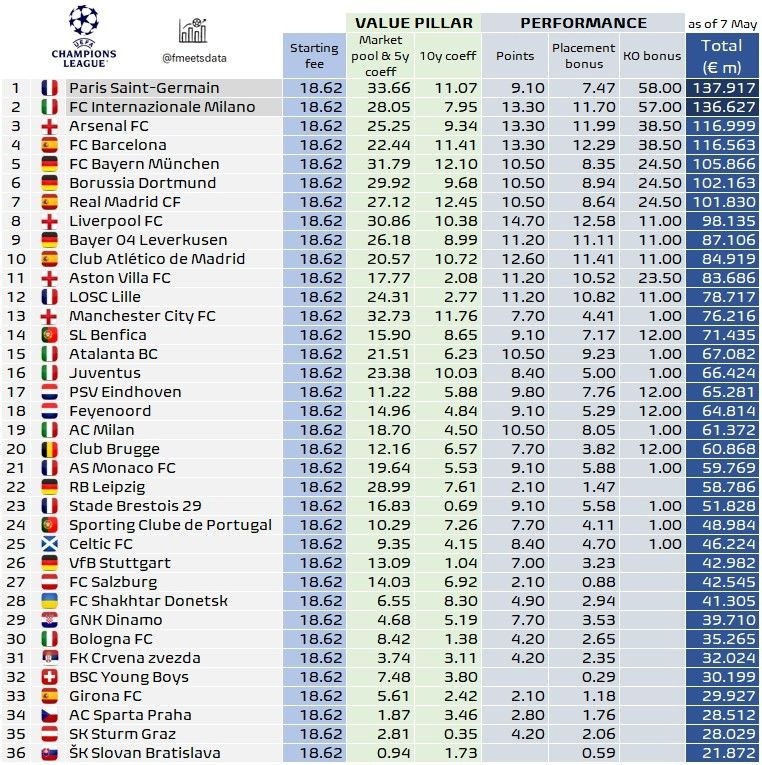 05月08日讯 巴黎双杀阿森纳晋级欧冠决赛,最新的本赛季欧冠奖金排行出炉!