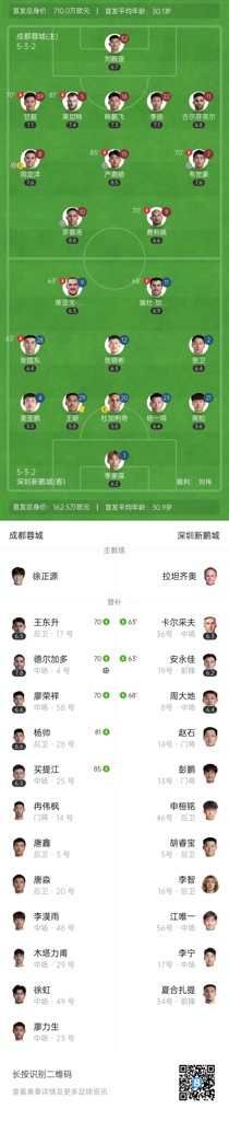 第75分钟,深圳新鹏城后场出球失误,严鼎皓直接一脚直塞打穿!德尔加多单刀破门!严鼎皓也完成了传射!成都蓉城4-0深圳新鹏城↓