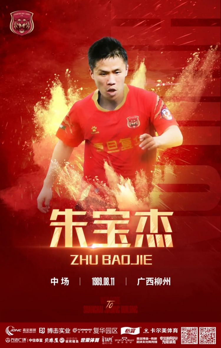 官宣|球员朱宝杰正式加盟上海嘉定汇龙